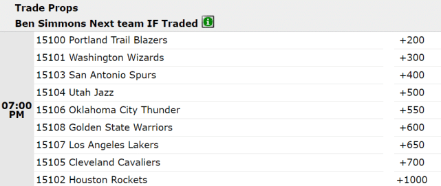 来源:JRS直播网06-22 14:35JRS直播网讯 费城再次无缘东部决赛,恩比德和西蒙斯都传出了交易流言。北京时间6月22日,费城两位球星的交易赔率出炉,如果他们被球队交易,最被看好的下家是哪些呢?