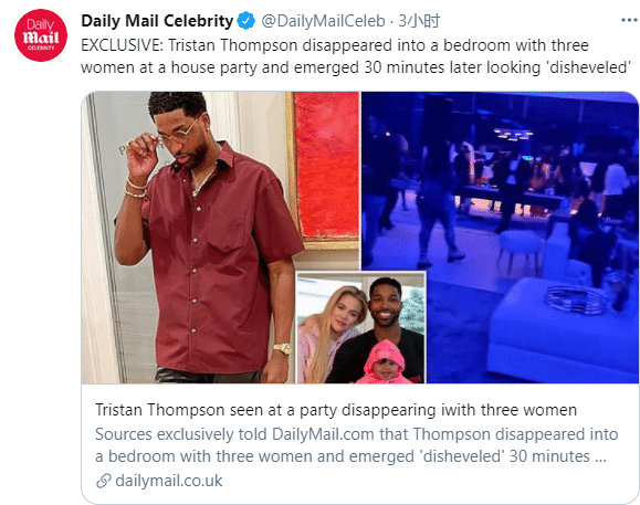 据TMZ报道,几周前,一位名叫西德尼-蔡斯的女性声称她和特里斯坦发生了性关系,这就发生在TT和卡戴珊和好之后;虽然TT否认并且威胁起诉这名女士并且索赔,但卡戴珊仍旧选择和TT分手,他们将共同抚养3岁的女儿。