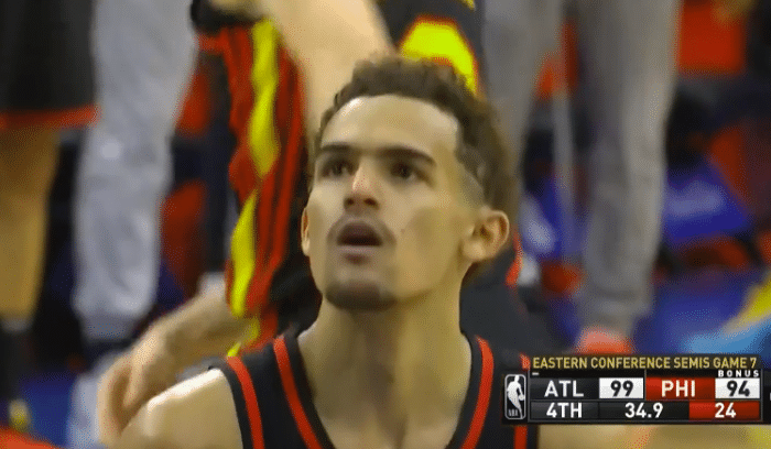 末节比赛开始后,恩比德跳投命中,随后他三分线外投射再有,两队分差来到了76平,两队比分依旧是交替领先,关键时刻库里三分命中,两队分差来到了4分,特雷杨中投命中,这也是他本场比赛的第三记中投,许尔特中投再中,两队比分打成了84平,比赛末段许尔特造犯规三罚全中,恩比德持球进攻,加里纳利抢断,随后快下暴扣得手,老鹰领先6分,比赛时间还剩下41.5秒,米尔顿抛投命中,老鹰犯规,特雷杨两罚全中,比赛失去悬念,76人球迷情绪失控,他们向场内投掷了水瓶表达不满。老里弗斯执教抢七大战遭遇四连败,追平历史最差纪录。