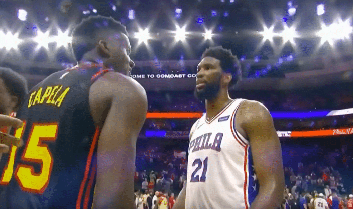 今天的比赛老鹰队首发阵容:特雷-杨、博格丹、许尔特、科林斯、卡佩拉,76人首发:西蒙斯、库里、科克马兹、哈里斯、恩比德。
