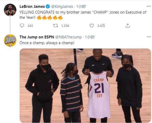 NBA官宣!詹姆斯-琼斯当选年度最佳总经理,詹皇第一时间祝贺