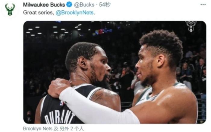 有趣的是,在雄鹿队成功地进入东部决赛之后,球队的官方社交媒体在网络上发文表示:“伟大的系列赛”,随后配上了一张杜兰特和字母哥在比赛结束之后拥抱的图片。虽然雄鹿队此时难掩欣喜之情,但是这张图片和文字中的描述却引来了很多篮网队球迷的不满。有很多篮网球迷表示,这轮系列赛并不能称之为伟大,因为雄鹿队在系列赛当中有些胜之不武。