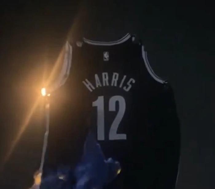 有趣的是,球迷焚烧球衣的举动并不常见,此前詹姆斯在离开骑士队的时候,也曾经享受过这样的待遇。而这一次,身为篮网队三巨头小弟的乔哈里斯,享受了一次和詹姆斯相同的待遇。在关键的抢7大战当中,乔哈里斯在46分钟的出场时间里只得到了10分9个篮板2个助攻的数据。他在球场上10投3中,丝毫找不到自己在本次系列赛开始之前的手感。