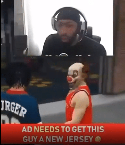 来源:JRS直播网06-20 11:02JRS直播网讯 北京时间6月20日,湖人核心浓眉哥进行游戏直播,在直播过程中有对手的人物形象身穿了一件哈登火箭时期的13号球衣。
