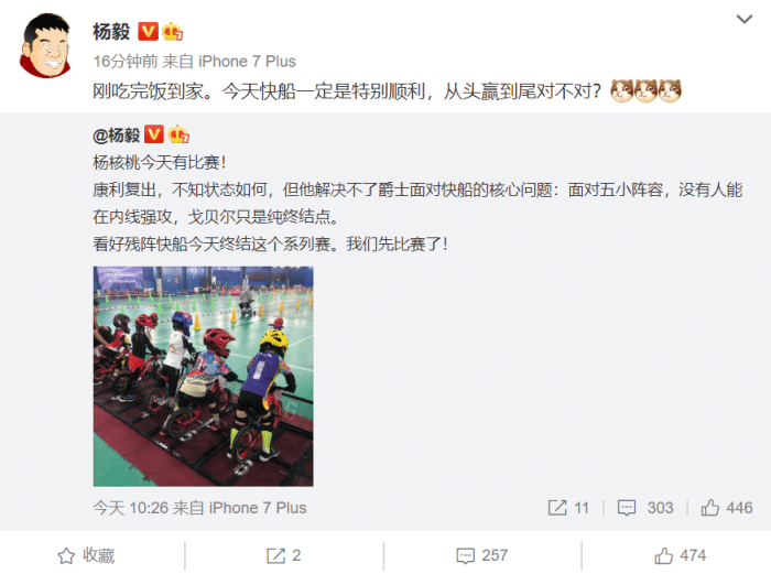 杨毅预言成功,他之前发微博“刚吃完饭到家。今天快船一定是特别顺利,从头赢到尾对不对?”果然就如他预测的,之前他还说康利复出也很难帮助爵士扭转局势,戈贝尔的劣势会被放大,全被他言中了!