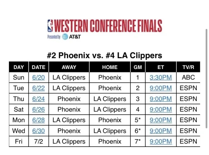 来源:JRS直播网06-19 14:39JRS直播网讯 快船没有等到抢七,最终在今天完成25分的大逆转解决了战斗送对手回家,现在西决的日程表已经出炉了,他们将会在两天后与太阳上演西决G1!