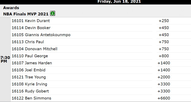 最新FMVP赔率出炉!杜兰特第一小卡掉出榜单,字母哥布克并列第二