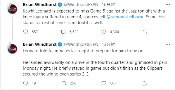 来源:JRS直播网06-17 10:50JRS直播网讯 快船惨遭重创,据名记温德霍斯特报道,莱昂纳德因膝伤预计将缺战G5天王山之战,系列赛剩余比赛也将出战成疑;小卡是在系列赛G4末节受伤的,目前来看,貌似小卡膝盖伤势很严重,如此一来,快船将变成乔治单核带队。