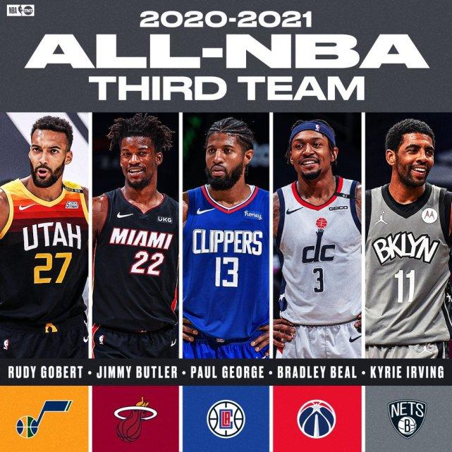 上赛季的三阵是威斯布鲁克、西蒙斯、巴特勒、塔图姆、戈贝尔,而本赛季的三阵是欧文、比尔、巴特勒、乔治、戈贝尔。巴特勒和戈贝尔继续留在三阵,威斯布鲁克、西蒙斯和塔图姆没有入选任何一套最佳阵容。