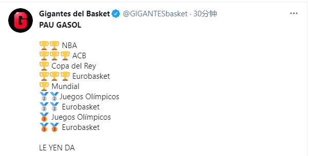 “家嫂”保罗-加索尔职业生涯堪称传奇,两次夺得NBA总冠军、三次ACB冠军、西班牙国王杯冠军、三座欧洲杯冠军以及奥运会奖牌等无数荣誉;40岁仍旧场均拿到10.3分4.9篮板1.2助攻,帮助巴萨杀进决赛并成功夺冠。