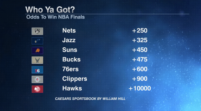 最新夺冠赔率出炉!篮网连伤哈登欧文仍排第一 太阳第三快船第六