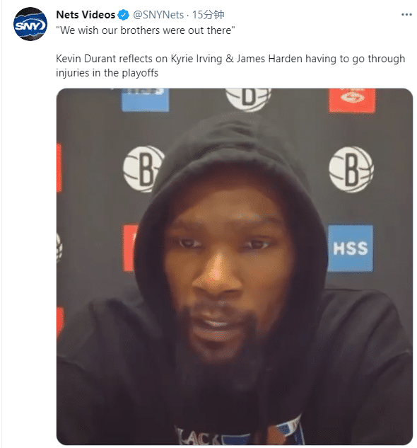 对于哈登和欧文都遭遇伤病,杜兰特回应:我希望我的兄弟都能够上场;我必须准备好在球场上做所有的事情,就像我每天晚上必须做的那样。