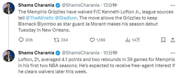 莫兰特确定明日解禁复出!灰熊官宣裁掉洛夫顿:曾单场狂轰42+14