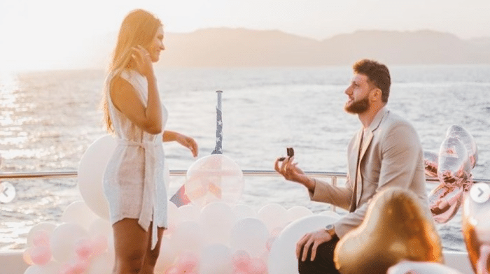 努尔基奇为女友布置了一个非常浪漫的求婚现场,是在海边,而现场还有很多气球和装饰品,看起来,努尔基奇为了这次求婚仪式,确实花费了不少心思。
