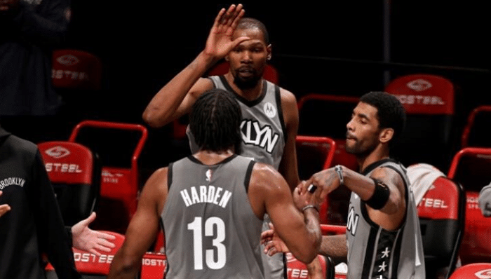篮网的球员包括:欧文、哈登、杜兰特、哈里斯和格里芬;