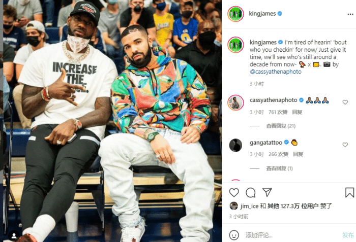 来源:JRS直播网06-13 10:50JRS直播网讯 昨天布朗尼伤愈复出,詹姆斯到现场观战,说唱歌星Drake以及杜德利、JR史密斯也来捧场;不久前詹姆斯晒出他与Drake坐在场边的同框合影,并且写道:我已经厌倦了听说你现在关注的人是谁;给点时间吧,我们会看到10年后谁仍然还在这里。