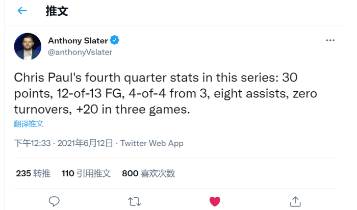一个数据体现了保罗有多恐怖!据记者anthony slater统计,西部半决赛3场比赛,保罗在第四节一共13中12三分4中4砍下30分8助攻0失误,且正负值高达+20!