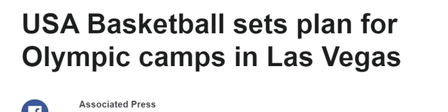 对于美国男篮来说,飞往东京奥运会前的最后一站是拉斯维加斯。他们将在7月7日开启训练营,届时,澳大利亚男篮、尼日利亚男篮、阿根廷男篮以及西班牙男篮也将前往拉斯维加斯,为奥运会做准备。