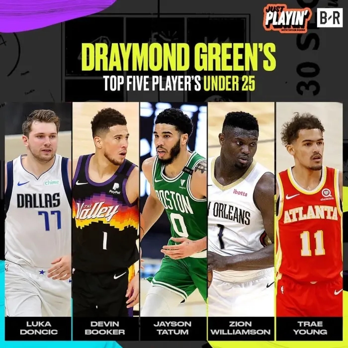 来源:JRS直播网06-10 11:53JRS直播网讯北京时间6月10日,追梦格林今日参加《Just Playin》节目时选出了他心目中现役25岁以下球员中的TOP5,东契奇领衔这个榜单!