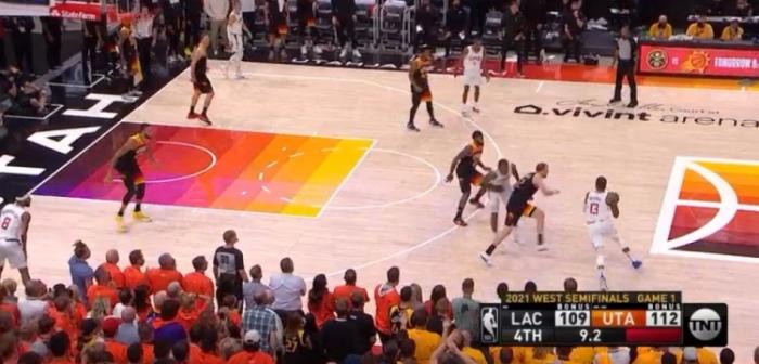 可惜的是,面对爵士队球员英格尔斯的防守,伦纳德没有找到投篮机会,或许是害怕隆指导赛后的怒吼,伦纳德在剩下6-7秒的时候把球传给了小莫,并且跑位试图要回球,可是小莫这边顶着戈贝尔的防守出手三分,结果被戈贝尔封盖,虽然小莫自己拿到了球,可惜的是他的再一次出手不仅没进还超时了,快船队也只能遭遇开门黑。