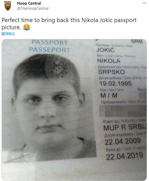 美媒还晒出约基奇童年照,一身肥肉又萌又可爱,还晒出约基奇的护照照片,发推写道:现在是重新晒出这张照片的最佳时机。