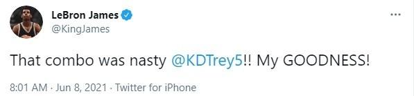 詹皇被淘汰仍抢戏!点赞杜兰特单挑字母哥 社媒回击黑子:下赛季必复仇