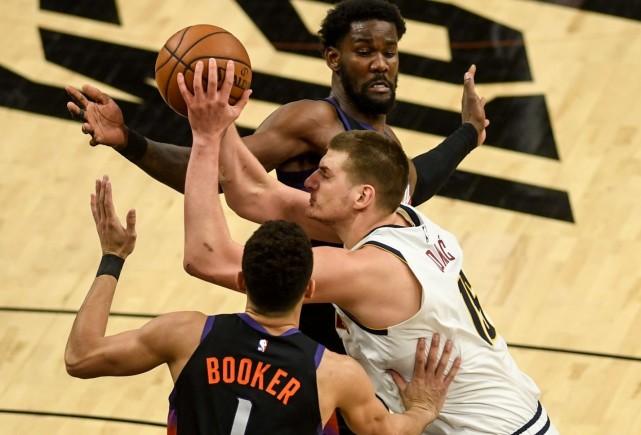 相比之下,掘金虽然也有5人得分上双,但只有约基奇一人得分超过20分。约基奇贡献22分9篮板,但他的投篮只有23中10,明显被太阳限制了。