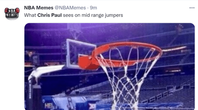 保罗的关键发挥,让控卫之神刷屏了。美媒甚至晒出一个巨型的篮筐,来形容末节保罗的投射表现。他们配文写道:“保罗中投时,他看到的篮筐。”