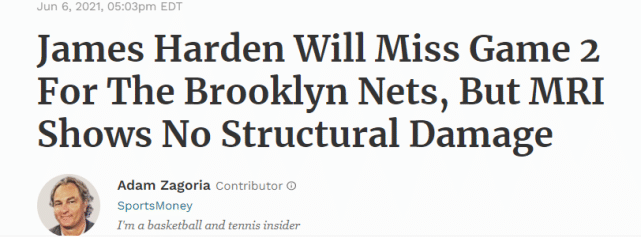 在篮网和雄鹿的东部半决赛首战中,哈登只打了43秒就因伤退场,随后篮网官方宣布哈登右腿筋受伤,本场不会回归。退出比赛后,哈登第一时间离开球馆,去接受核磁共振检查。现在,核磁结果出来,哈登和篮网都可以松一口气了。