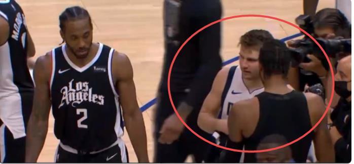 输球之后,22岁的东契奇还是很有风度的,他主动上前祝贺自己的前辈们,而此时东契奇和保罗乔治的互动也引发了球迷的热议。