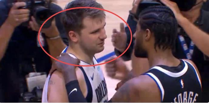 破案了,乔治说了什么让东契奇转悲为喜?乔治举动给出答案
