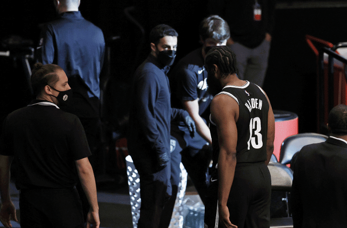 来源:JRS直播网06-06 19:22JRS直播网讯 北京时间6月6日,东部半决赛打响,篮网115-107击败雄鹿,收获开门红。本场比赛篮网三军用命,包括欧文、杜兰特、格里芬、乔哈还有替补席的迈克詹姆斯都有不错发挥,但最让人揪心的还是哈登的伤情,开场仅仅43秒,在没有对抗的情况下伤退离场,还是右腿腿筋!篮网赢球后,杜兰特欧文同时提起哈登,篮网晋级概率出炉,字母哥发声,哈登真悬了?