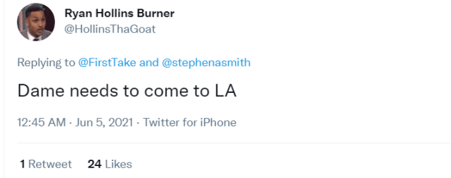 不过,唐斯毕竟在森林狼没有什么成功的经验,很多球迷还是看衰他的前景。有球迷建议利拉德还是要争取前往洛杉矶,不要浪费自己的巅峰期。据悉,快船和湖人都有可能加入利拉德争夺战。