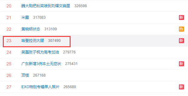 很快“哈登拉伤大腿”的相关话题就登上了热搜榜的前列,实时搜索人数高达数十万,可见这场焦点战中哈登的受伤引发了外界很大的关注度,诸如詹姆斯等人也都在个人的社交媒体上给哈登送上祝福。
