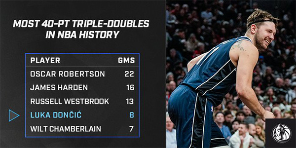 东契奇40+三双狂刷纪录:连超张伯伦诺天王 末节2分仍带队赢球