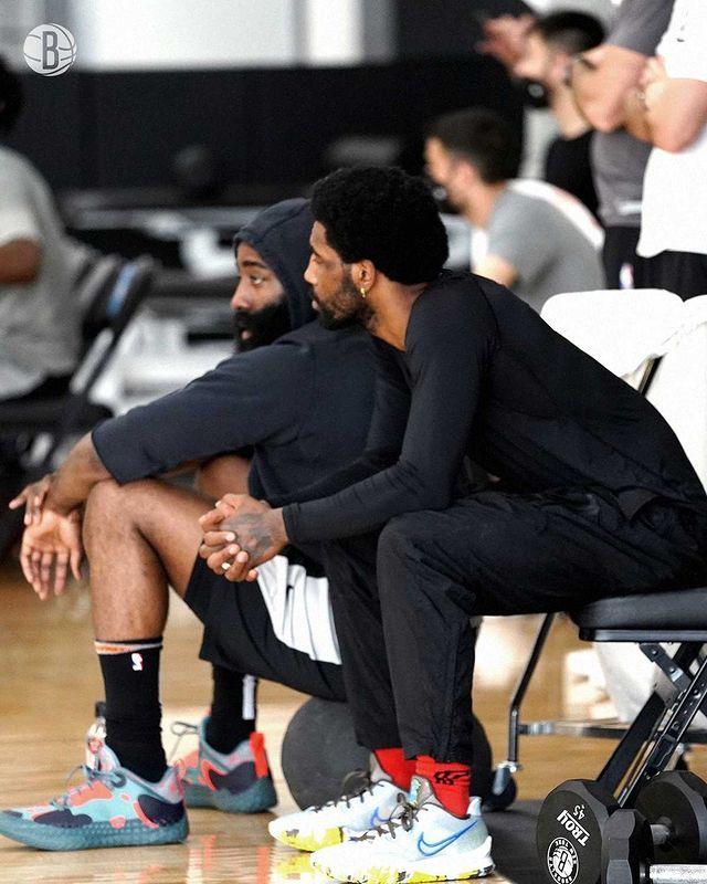 篮网备战雄鹿!杜兰特红帽抢镜哈登欧文场边交流,官方:快乐时光