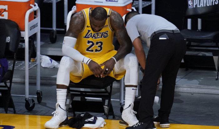 詹姆斯也表示自己的脚踝一直没有恢复到受伤之前的水准,让自己感到非常困扰的是球队从来没有全员齐整(季后赛初期是全员健康的)。詹姆斯表示他相信管理层,并承认他和浓眉将在这个过程中投入很多,看看休赛期会发生什么。