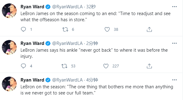 赛后接受采访时,詹姆斯表示最让他困扰的是,湖人队这个赛季从未完整过,也表示这个缩水赛季让人疲惫不堪,以及让人精神崩溃;詹姆斯还透露脚踝受伤后再也没有打出受伤前的水平,脚踝还是有一些并发症。