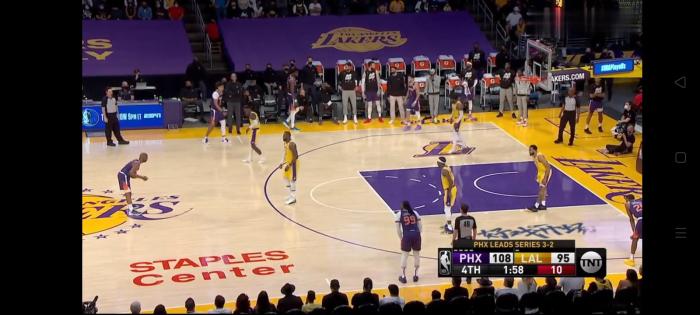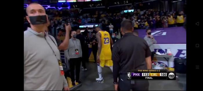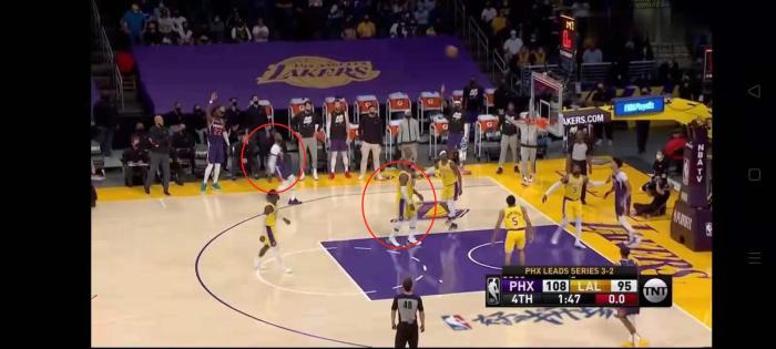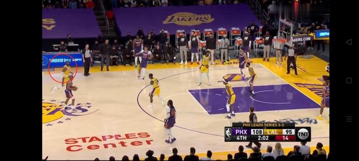 在防守回合,詹姆斯迟迟未回来,连解说员苏群老师都发问,为什么没有看到詹姆斯呢?防守的散步,让詹姆斯防守的克劳德出现了三分球机会,克劳德命中了三分,彻底的让比赛没有了悬念。而在进攻端,虽然詹姆斯也投进了三分球,但是他接连的三分出手和散步防守几乎告诉湖人队的球员,比赛就这样了,当然最终湖人队也是输掉了比赛。