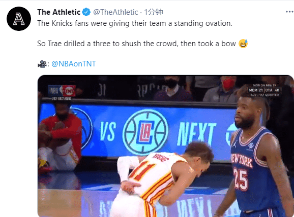 来源:JRS直播网06-03 15:46JRS直播网讯 北京时间6月3日,老鹰首轮4-1淘汰尼克斯,特雷杨G5晋级战轰下36分9助攻4篮板2抢断,末节独砍18分统治比赛,关键时刻特雷杨用一记不讲理三分杀死比赛,锁定胜利后麦迪逊花园球馆瞬间安静下来,特雷杨90度弯腰鞠躬并且挥手对尼克斯球迷说再见,特雷杨如此庆祝动作引热议。
