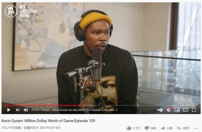 来源:JRS直播网06-02 15:40JRS直播网讯今天早些时候篮网击败凯尔特人4:1晋级了东部半决赛,但是美媒晒出了杜兰特在4月19日参加了《Million Dollaz Worth of Game》播客节目第109期的录制,期间他又重谈加盟勇士的话题,引发了热议!