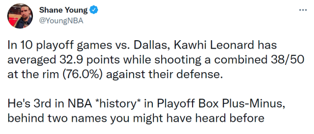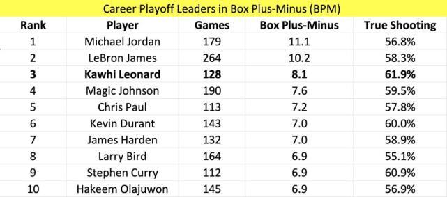 肖恩-杨还列出了小卡的一项关键数据排名。在季后赛数据正负值(BPM)方面,小卡达到8.1,位居历史第3位,仅次于乔丹(11.1)和詹姆斯(10.2),而在这项数据历史前十的球星里,小卡的真实命中率(61.9%)是最高的。