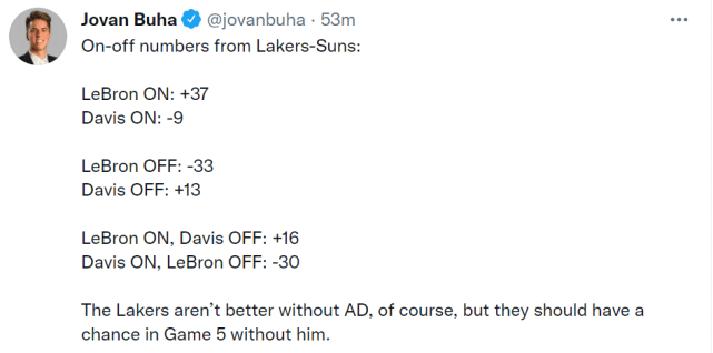 Buha指出没有浓眉的湖人当然不会更好,但G5没有浓眉,湖人确实仍有机会取胜。