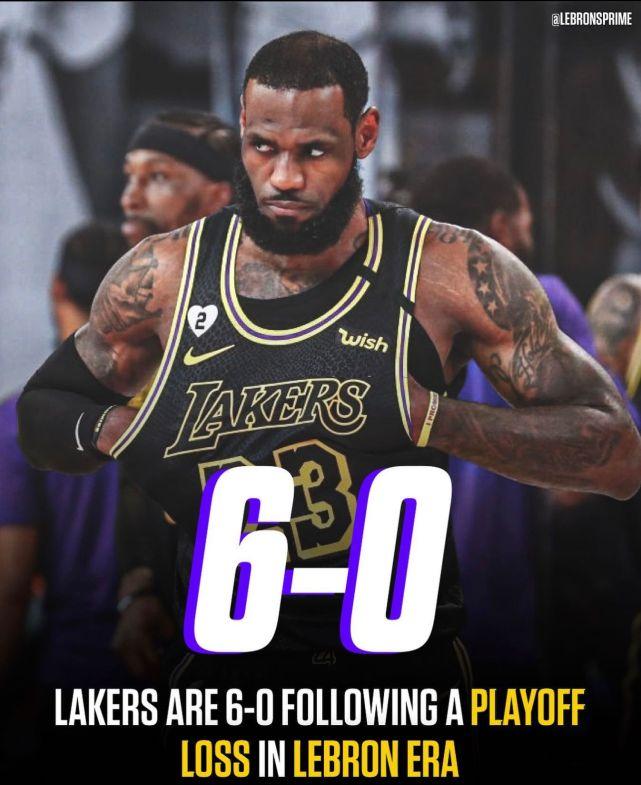 浓眉不打,詹姆斯将获得更多的进攻机会,而一旦开启全力詹模式,詹姆斯的威力是相当可怕的。詹姆斯效力湖人时期,从未遭遇季后赛连败。数据显示,他们在输掉一场季后赛接下来的比赛是6胜0负,詹姆斯能延续这一定律吗?