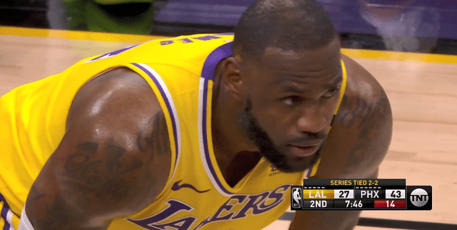 大比分落后,当镜头放到詹姆斯身上的时候,我们看到了詹姆斯低下了高傲的头颅,他的情绪看起来很低落,就湖人队目前的处境,就湖人队目前的表情,这场比赛之后,詹姆斯的天王山纪录或许就此被终结。