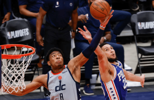 当一名后卫不敢投篮时,那么他永远都不可能练就一手投篮,西蒙斯就是如此,本场比赛西蒙斯毫无疑问被奇才二年级新秀八村垒打爆了,八村垒全场比赛12中8轰下20分13篮板,末节比赛命中关键三分帮助球队稳住局面,而西蒙斯在末节完全无法帮助球队得分,只依靠罚球得到4分。
