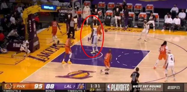 2:2的情况加上接下来的处境不佳,让很多球迷开始质疑,在浓眉哥受伤后,在最后一节只差7分,湖人队进攻未果,詹姆斯竟然放弃了退防,而是站在后场默默的看着场上比赛进行。