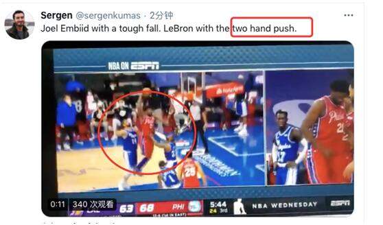 在恩比德上篮过程中,詹姆斯推了恩比德的腰部,导致他倒地久久不起,不只在INS上,相隔万里的中国篮球论坛也对这个动作就行了讨论与抨击。作为职业球员,这种小动作不能说是每个球员的家常便饭,但也是很常见的,在抢篮板或者上篮时推对手的腰部来获利,在野球场不该出现,但在职业赛场上是可以理解的。在骑士1.0时代,当时的联盟还是铁血防守,小詹可没少被这样干过,如果把对詹姆斯的这种动作标准放在现在的哪个球星身上,他们都是像球迷说的那样“肮脏”。