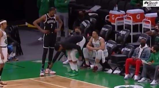 在这种七场就决定比赛胜负的季后赛系列赛当中,双方都会想尽一切办法来战胜对手,而最终的结果就是比赛当中可能会发生很多让人啼笑皆非的事情。不知道大家有没有注意到篮网和凯尔特人比赛中的这一幕,凯尔特人的汤普森原本是坐在场下的,而杜兰特此时站在他的旁边,而汤普森此时居然伸出手去解掉了杜兰特的鞋带。虽然杜兰特对此没什么反应,不过裁判还是对汤普森给予了口头警告。
