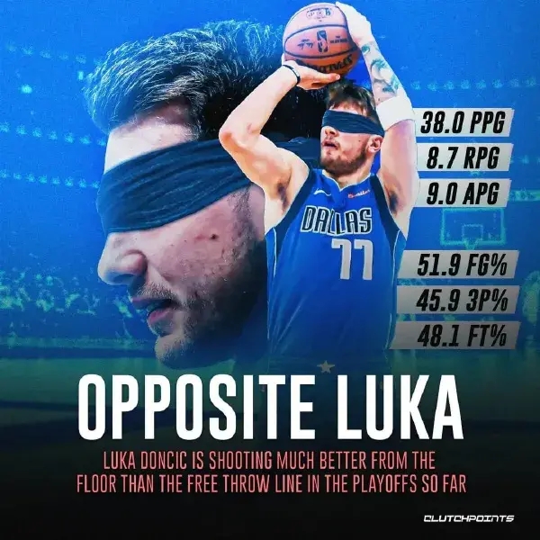 因为东契奇的大腿是历史级别的粗,系列赛场均能爆砍38分8.7板9助准三双数据,投篮命中率达到51.9%,三分命中率高达45.9%,罚球命中率则为48.1%。